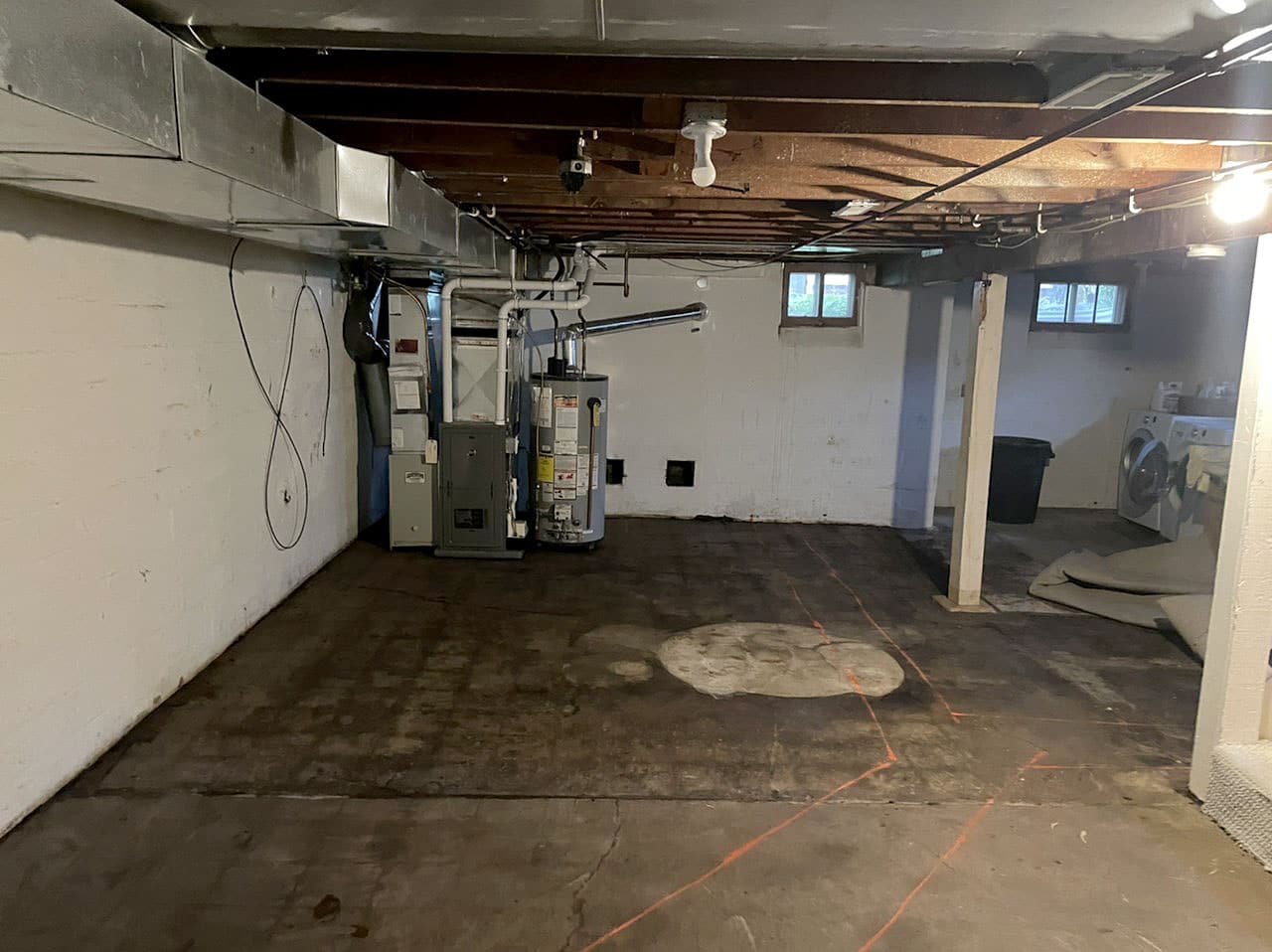 Before White Crane crews arrived on-site, our clients removed all their belongings from the lower level. With a newly bare basement, we could start the necessary demolition to kick-off the 55 day construction schedule. The open nature of the existing plan, though not especially functional or cozy to our clients, actually helped in making demolition a pretty fast process, as major walls did not need to be removed.