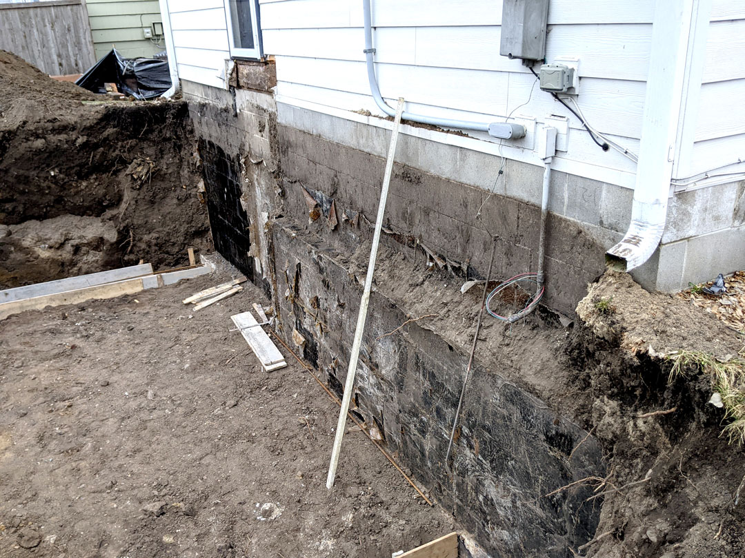 In the backyard, excavation has started to make room for the new addition full-height basement foundation.