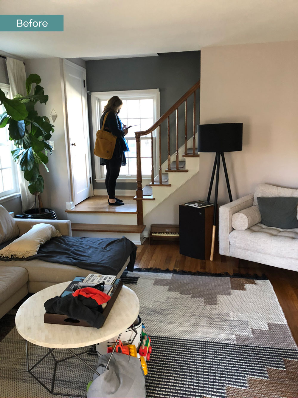 Before | The addition will begin just beyond the stairs to the second floor. We'll remove the back wall to open the existing house into the new addition.