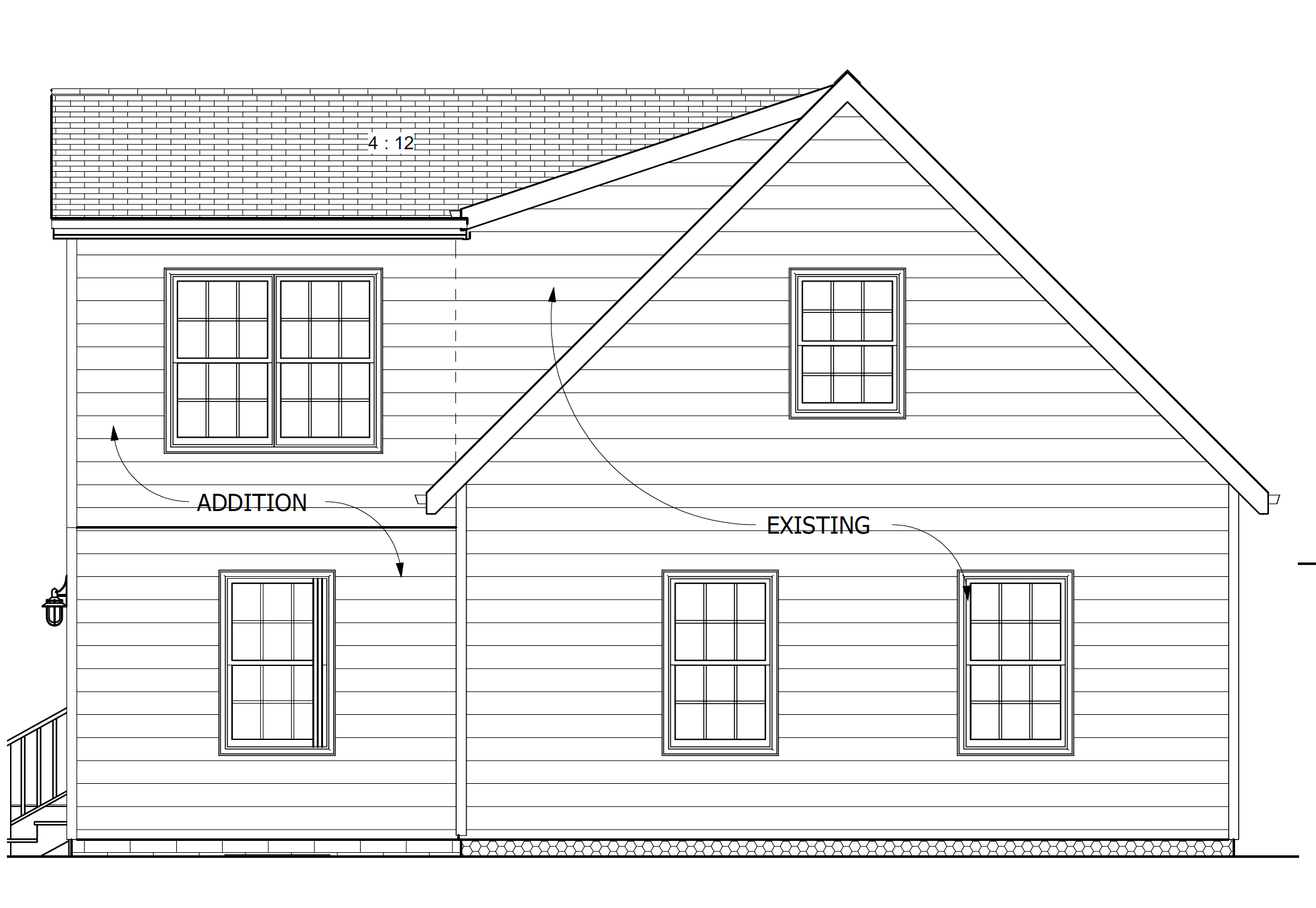 This elevation drawing shows how the existing home will look with the new addition.