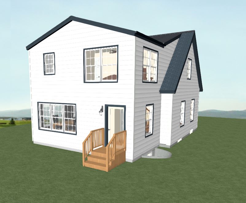 This rendered drawing shows the new addition on the back of the house. The design ties into the existing roof lines and considers the lot size.