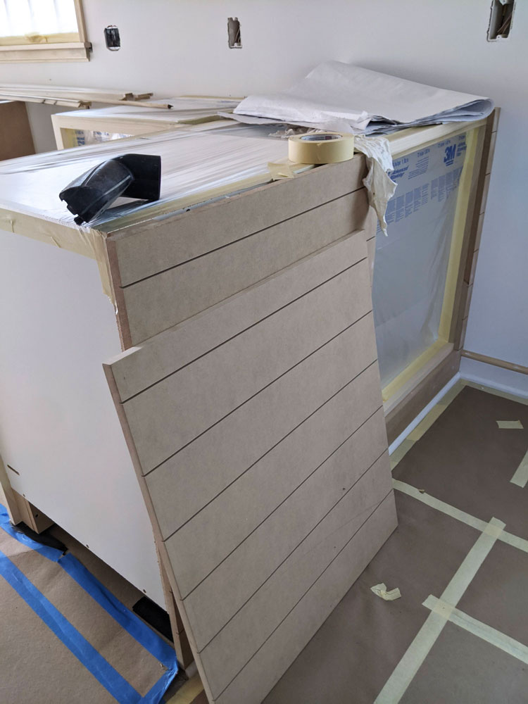 Cabinet doors and drawers get removed and are painted off-site, as shops offer more controlled environments to maintain professional level finishing.