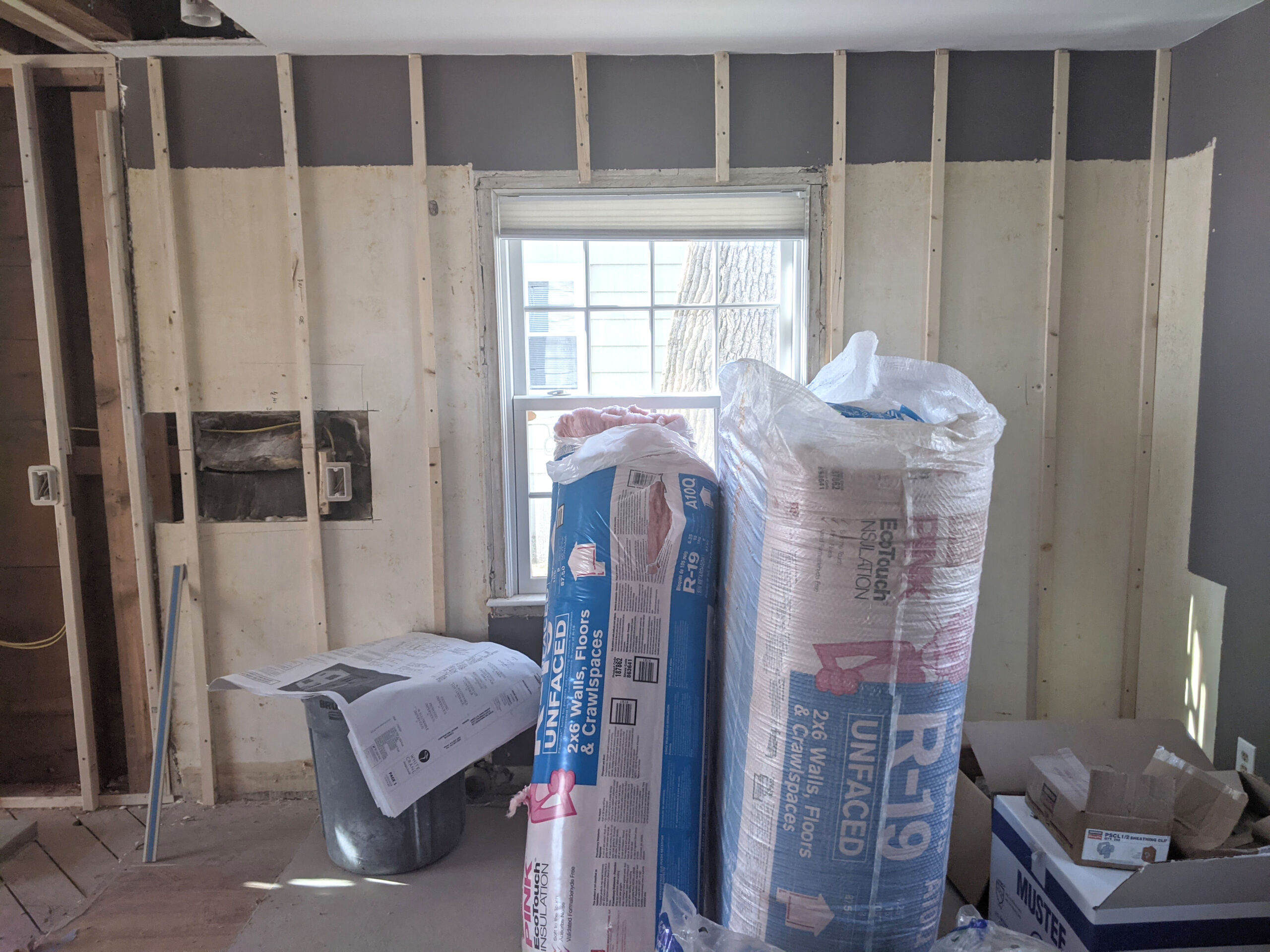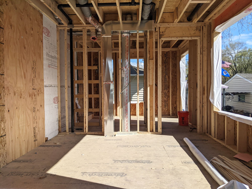Our team is ready to start insulating with the framing and rough-ins completed. The cavities of the home's walls will need the insulation shown here to protect it from the chilly Minnesota winters.