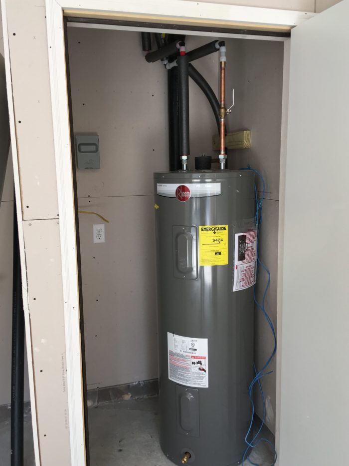 The hot water heater for the ADU is located in the garage below, in a heated utility closet.