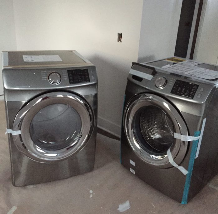 The stacking washer and dryer will be installed in the Bath.