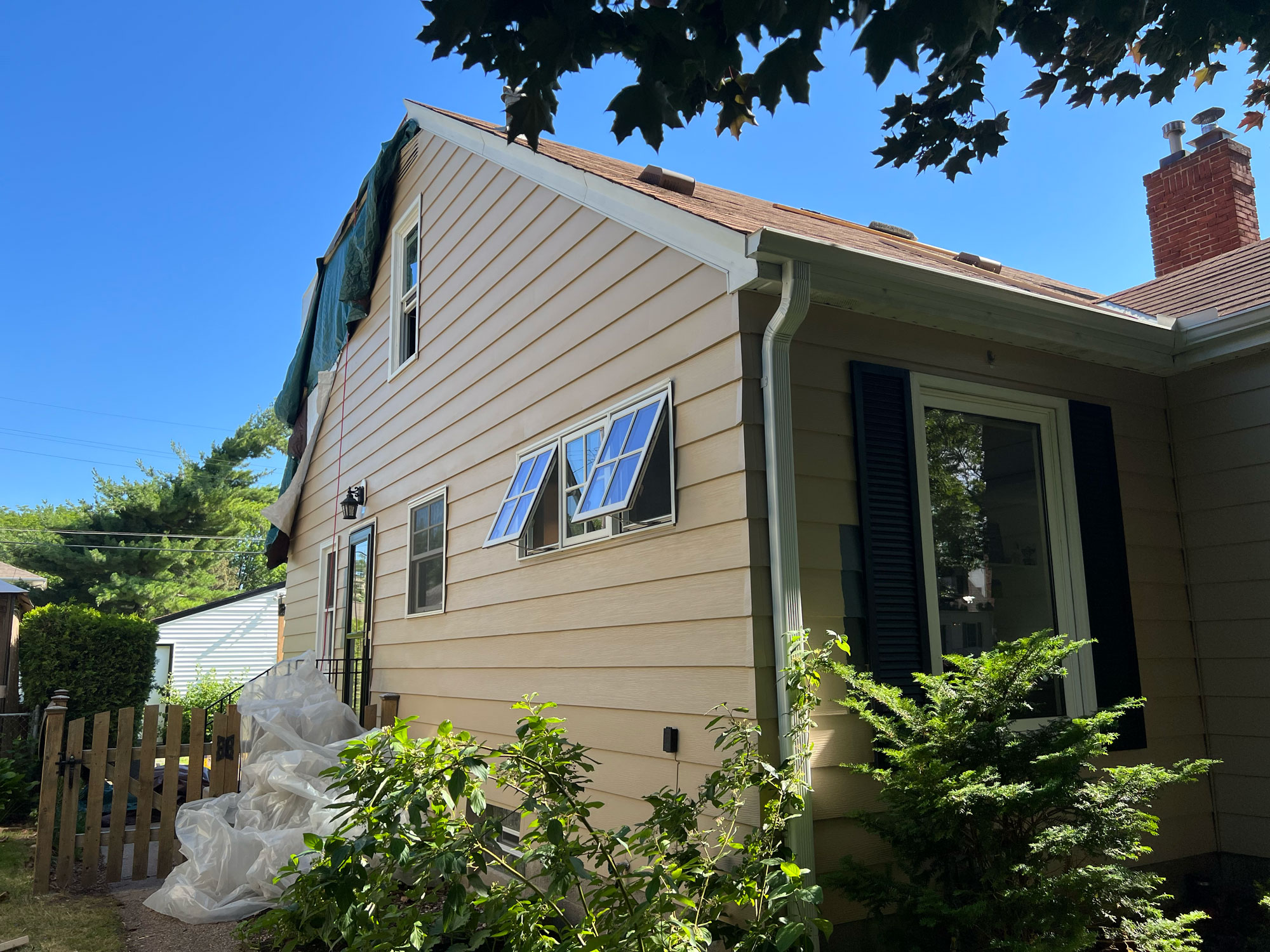 Within only a couple of weeks, the new dormer and upper level remodel was framed, sheathed, and reroofed with new skylights. Along the back of the home, the added upper level space is hard to miss, with all new windows set to become an excellent source of natural light and welcome component of each new room.