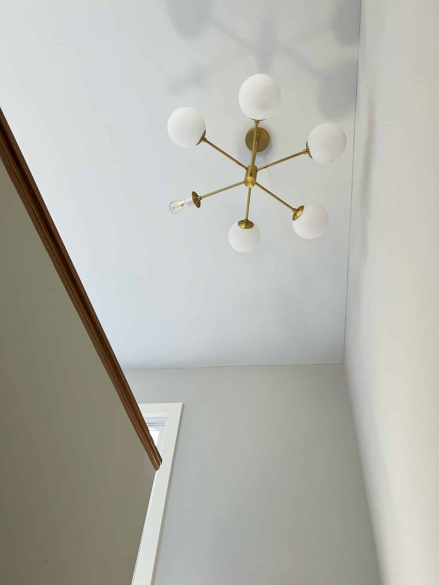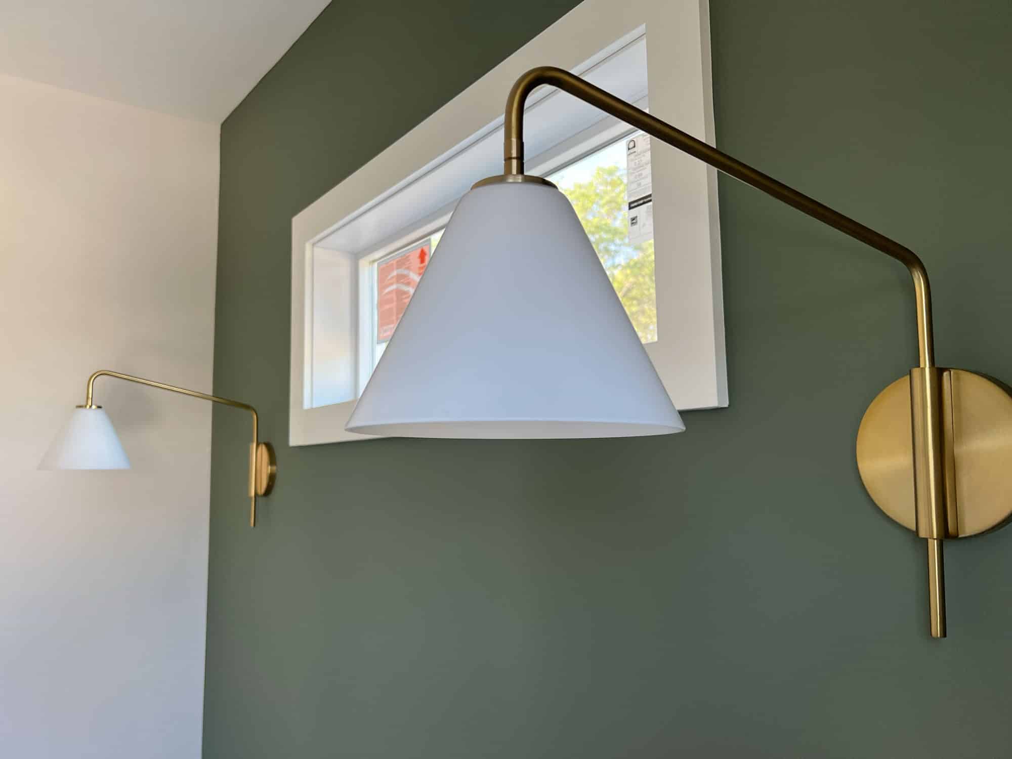 Right after painting, we enter the “electrical final” stage of construction, taking a small crew of 1-2 a single day to install all our new decorative fixtures. While most fixtures are selected during the design phase, the bedroom sconces were client provided to give the clients a little extra time to find exactly what they were looking for. When working with large fixtures like the statement pendant over the stair, we pay particular attention to making sure that the lowest point of the pendant maintains the right clearances, as even the most beautiful fixtures could be a nuisance if they interfered with a door swing or were low enough to run into! Regardless of the size or placement of a decorative light, designers and homeowners can use them to make a big statement or provide subtle details to both the ambiance and overall design. Lighting is expressive, where the level of brightness, color temperature, and fixture design work together to define style and add functionality to a space, which is one reason the selection process is both exciting and important.