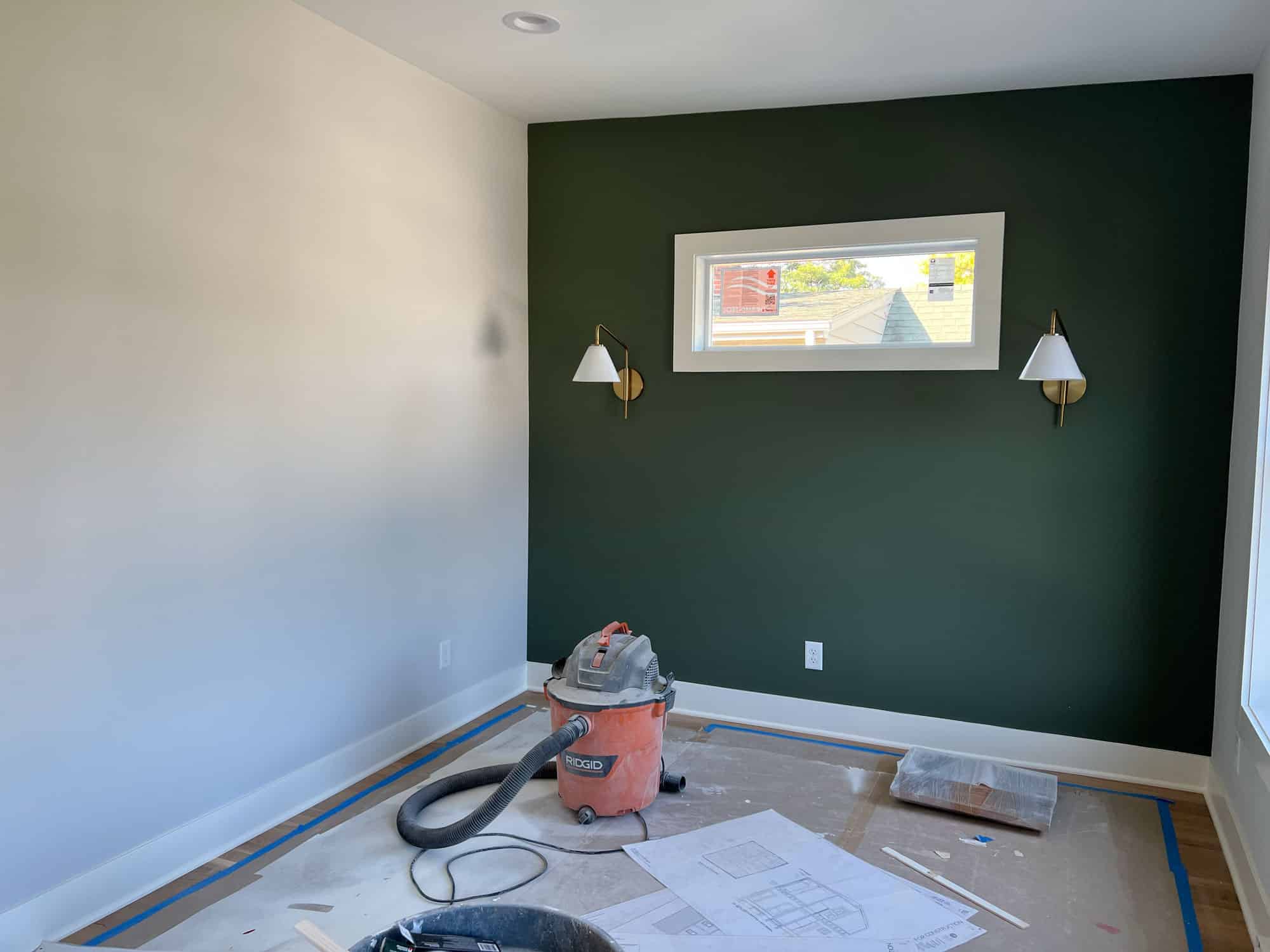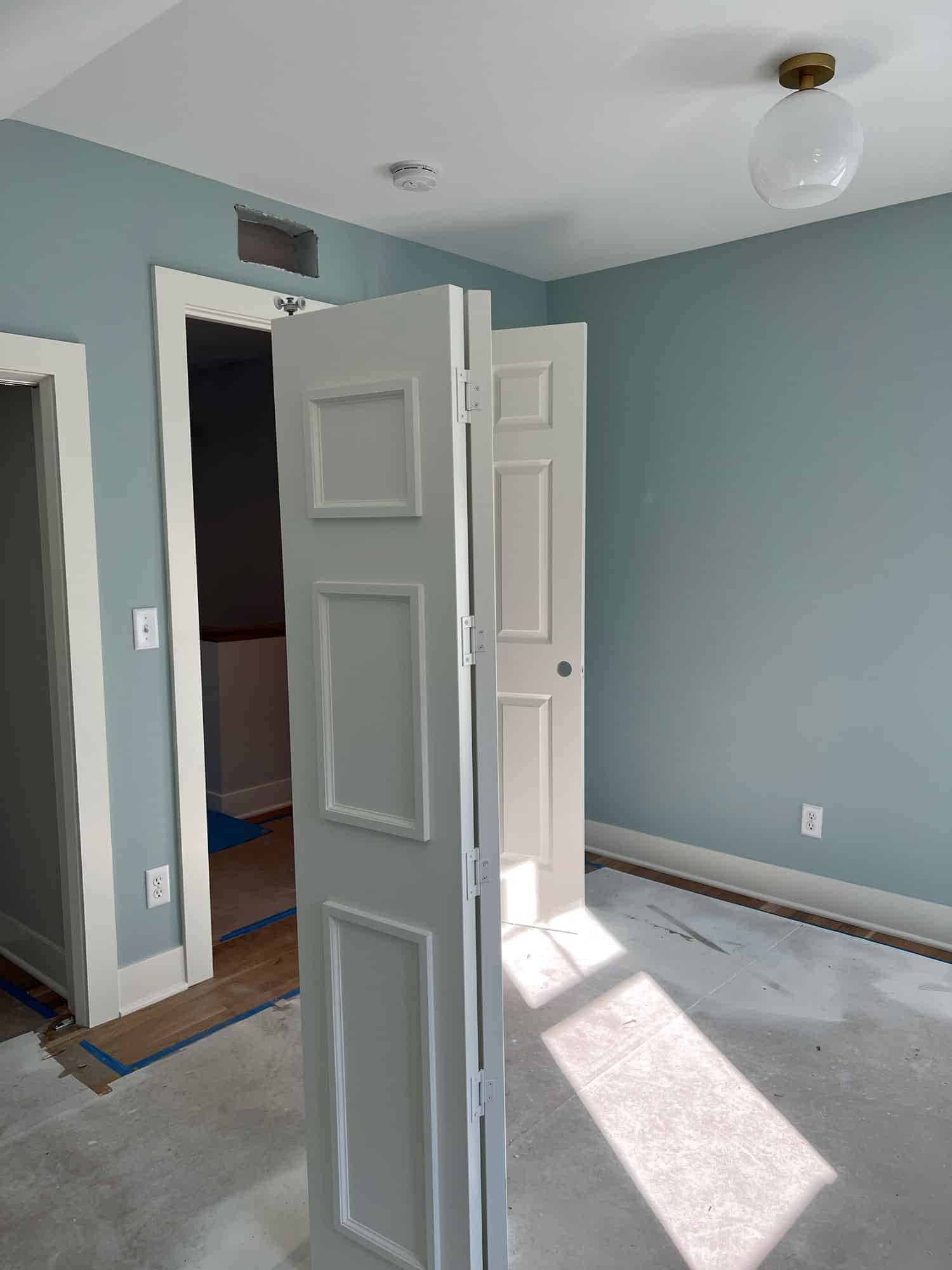 Painting is no small task on any job site and involves finishing several surfaces, from walls and doors to millwork and cabinets. From the prep work like taping to painting and drying repetitively, painting typically takes at least 8 days. Our designers work directly with clients to find the right shades and opportunities to use paint as a unique design feature, as we’ve done in the primary suite with a stunning Sherwin Williams green called Rosemary.