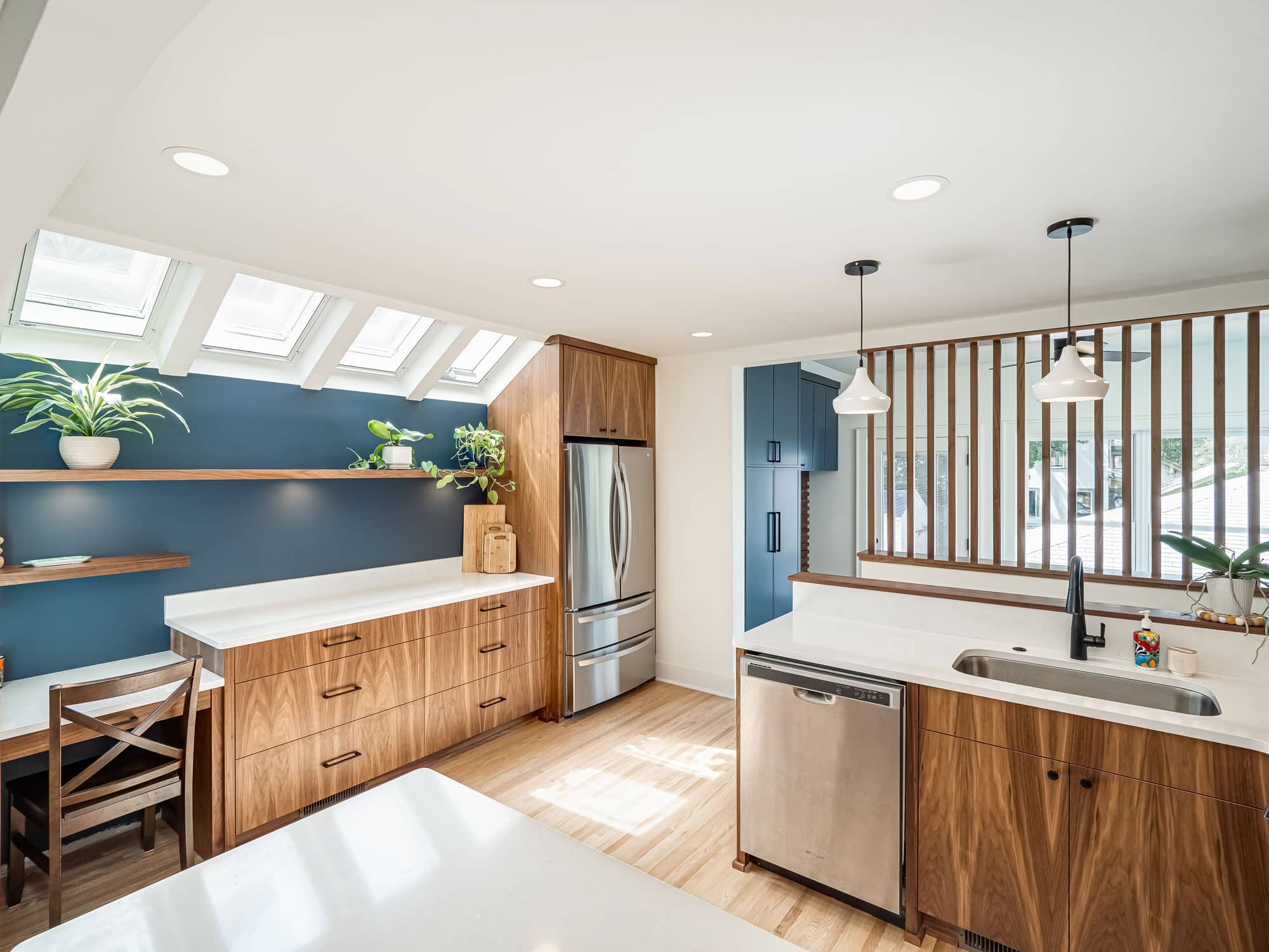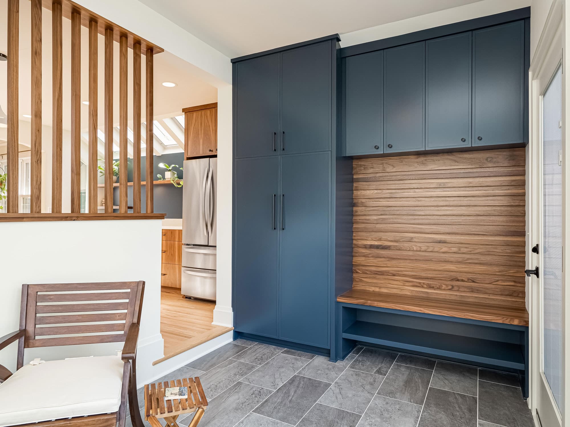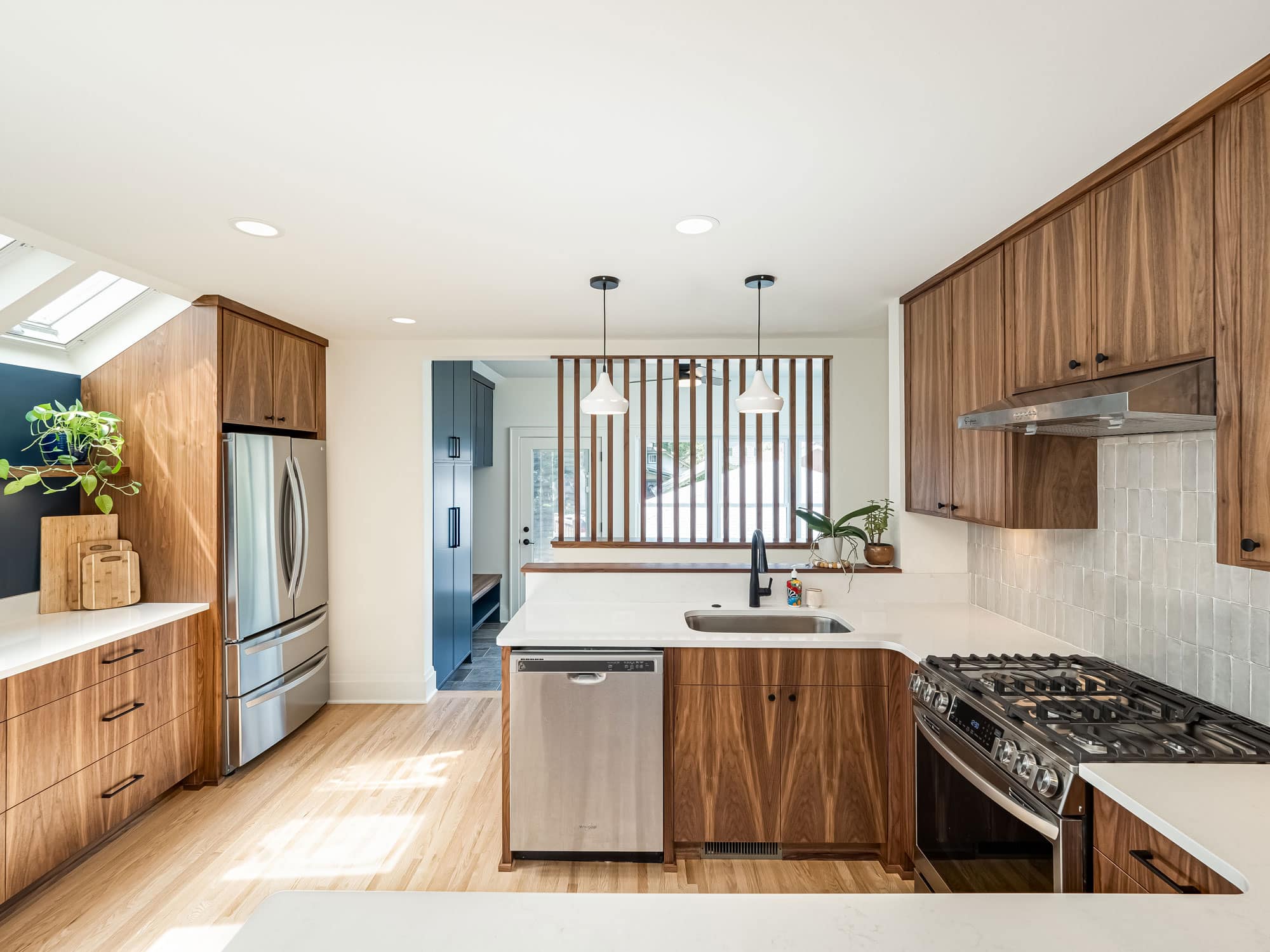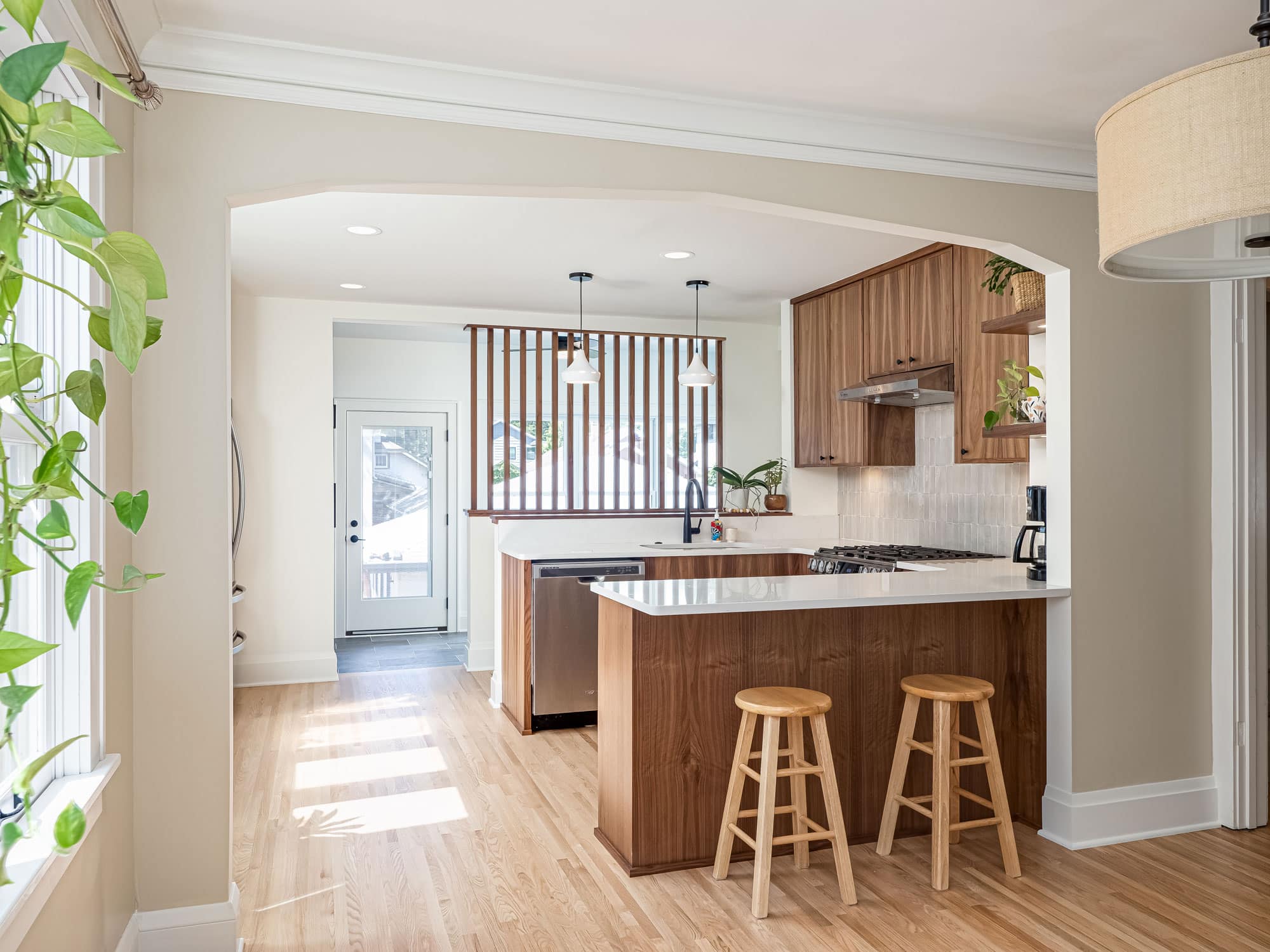 acf domain was triggered too early. This is usually an indicator for some code in the plugin or theme running too early. Translations should be loaded at the init action or later. Please see Debugging in WordPress for more information. (This message was added in version 6.7.0.) in /home/dh_ubgp4r/cur007-01.brethummel.com/wp-includes/functions.php on line 6131responsive-lightbox-lite domain was triggered too early. This is usually an indicator for some code in the plugin or theme running too early. Translations should be loaded at the init action or later. Please see Debugging in WordPress for more information. (This message was added in version 6.7.0.) in /home/dh_ubgp4r/cur007-01.brethummel.com/wp-includes/functions.php on line 6131rocket domain was triggered too early. This is usually an indicator for some code in the plugin or theme running too early. Translations should be loaded at the init action or later. Please see Debugging in WordPress for more information. (This message was added in version 6.7.0.) in /home/dh_ubgp4r/cur007-01.brethummel.com/wp-includes/functions.php on line 6131wordpress-seo domain was triggered too early. This is usually an indicator for some code in the plugin or theme running too early. Translations should be loaded at the init action or later. Please see Debugging in WordPress for more information. (This message was added in version 6.7.0.) in /home/dh_ubgp4r/cur007-01.brethummel.com/wp-includes/functions.php on line 6131For this Lake Nokomis home, satisfying a need for more space and better storage meant designing a mudroom addition at the rear of the home that functioned as a more welcoming entry with seasonal storage and views to the backyard suitable for year-round use and day-to-day storage. Designers considered the limited lot size and the desire to preserve yard space to find the right size for the new mudroom. In the kitchen, we tore down walls and low soffits to increase maneuverability on the main level. Selections like the handcrafted backsplash tiles, pops of bold blues, rounded countertop edges, sleek walnut cabinets, and floating shelving add personality and modern sophistication to the room.