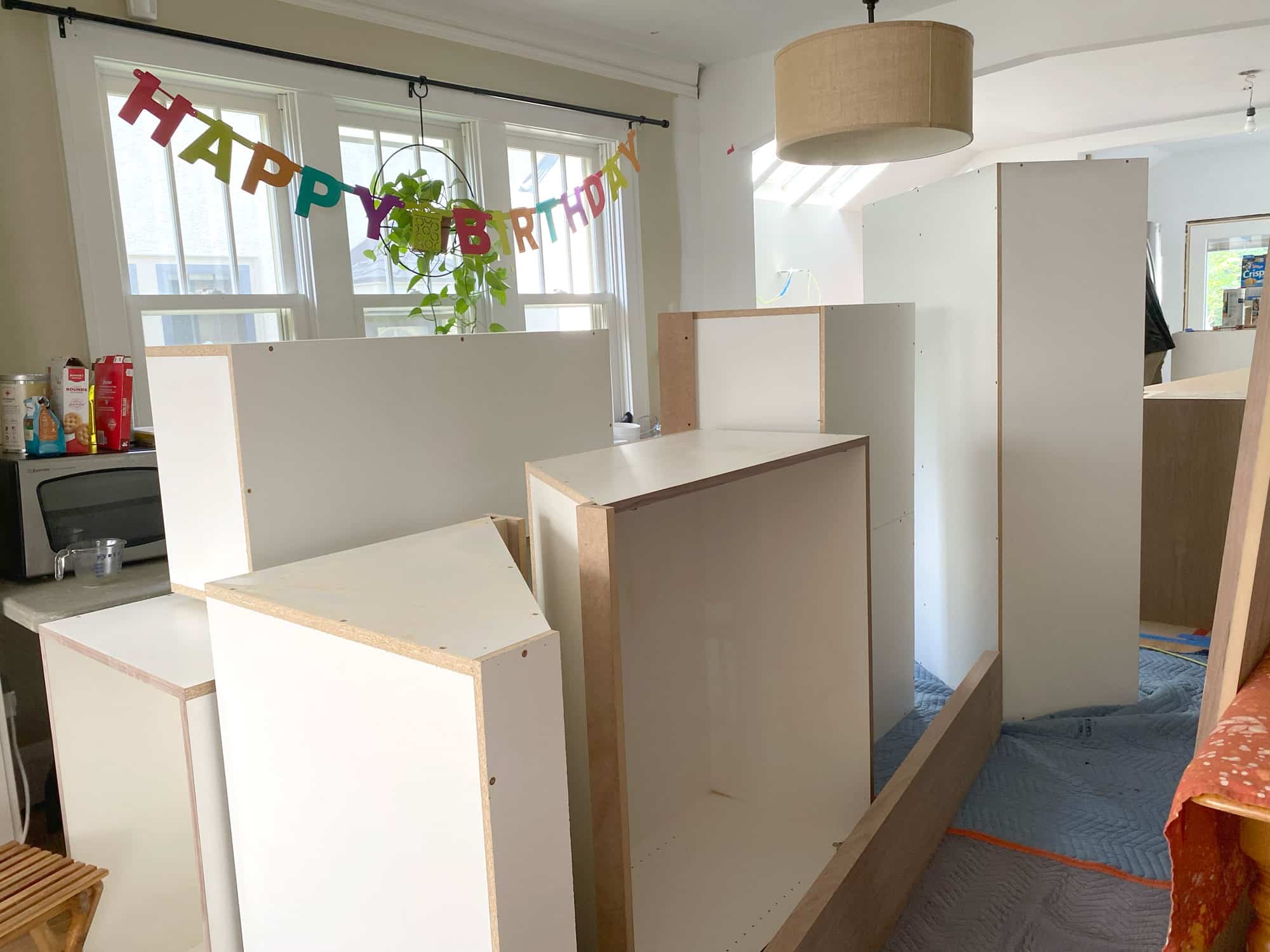 The walnut kitchen cabinets are a feature element of the design for this Lake Nokomis remodel. The earthy tones will blend the modern accents of the updated kitchen with the character of the existing 1920's home. Cabinet doors and drawers will be attached after they are finished off-site to protect them from construction dust and debris.