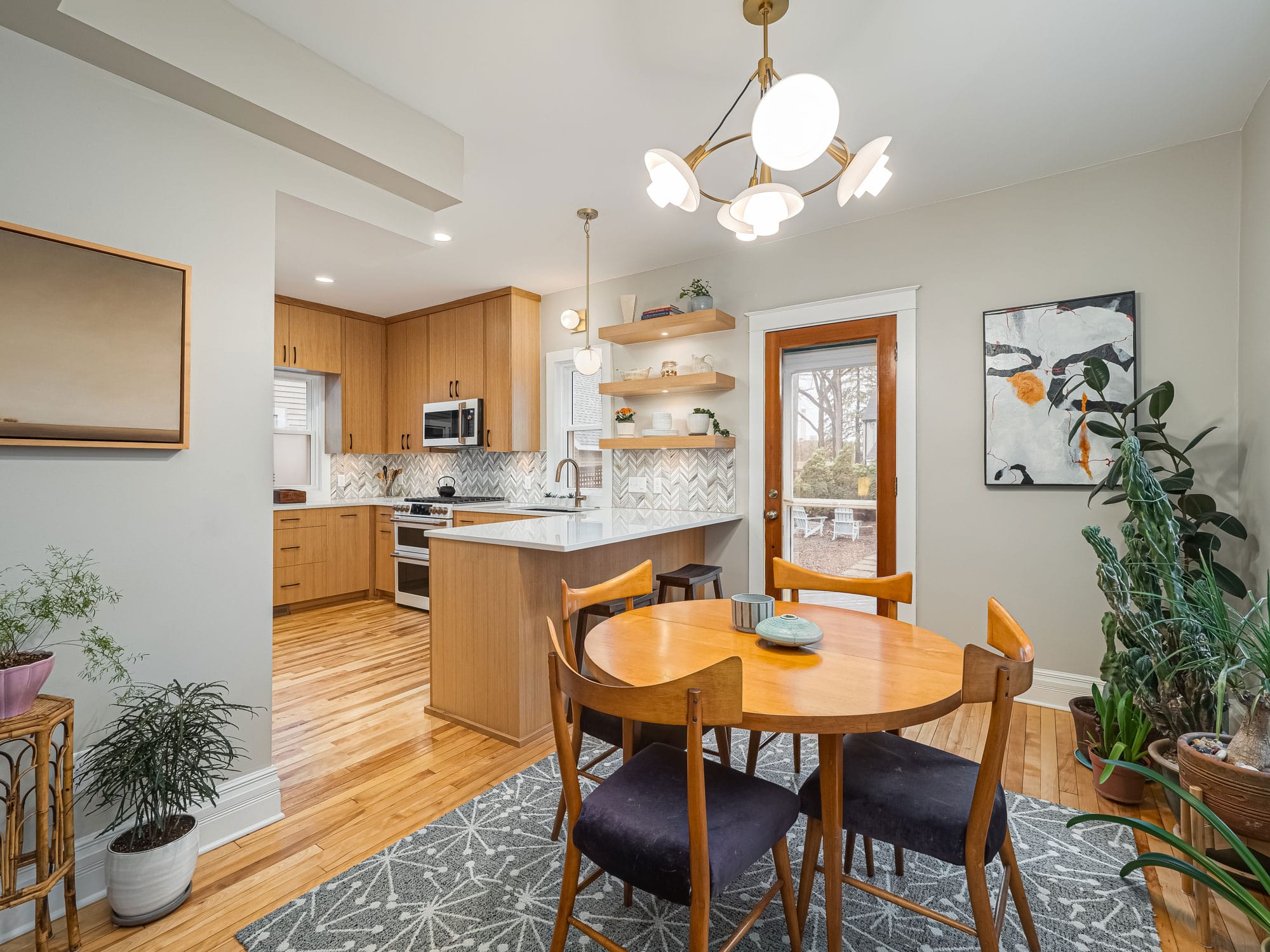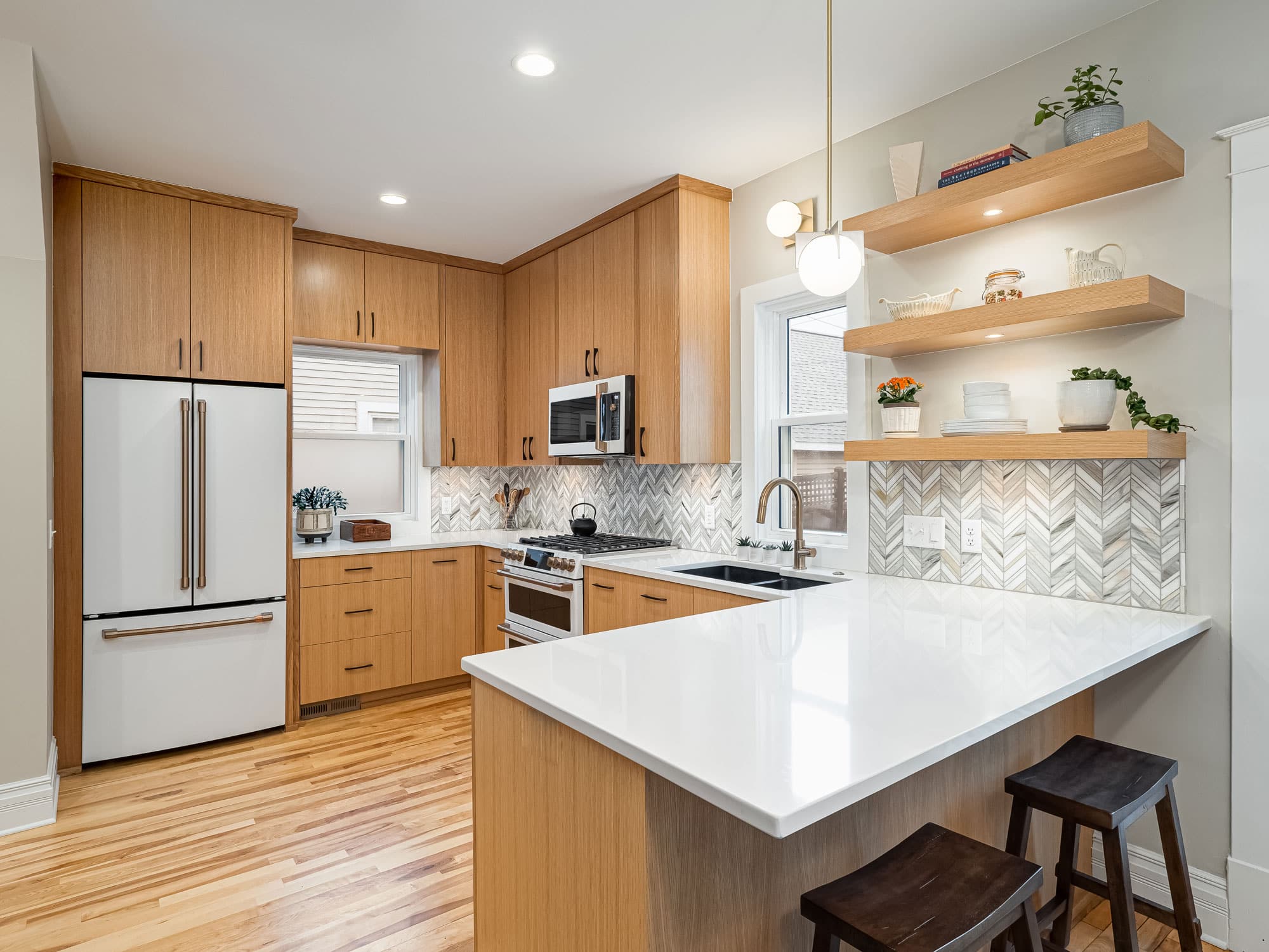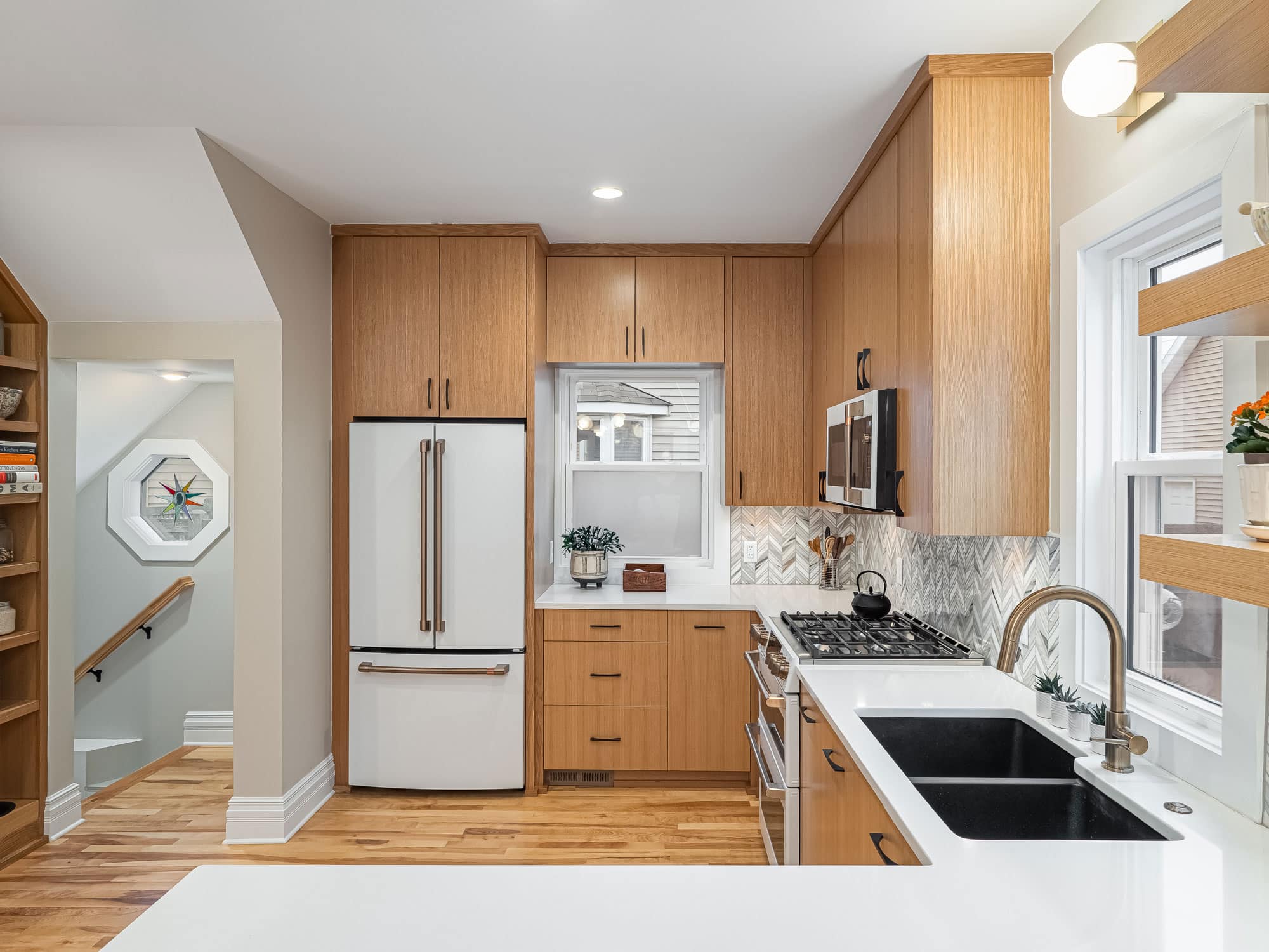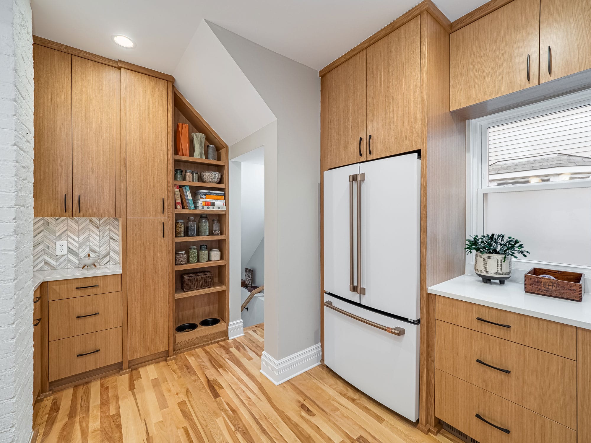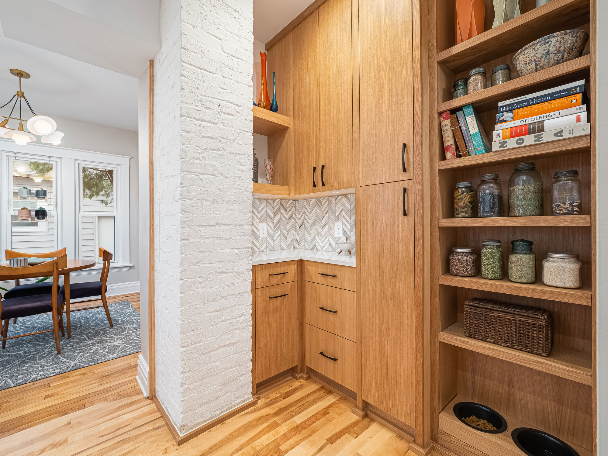 acf domain was triggered too early. This is usually an indicator for some code in the plugin or theme running too early. Translations should be loaded at the init action or later. Please see Debugging in WordPress for more information. (This message was added in version 6.7.0.) in /home/dh_ubgp4r/cur007-01.brethummel.com/wp-includes/functions.php on line 6131responsive-lightbox-lite domain was triggered too early. This is usually an indicator for some code in the plugin or theme running too early. Translations should be loaded at the init action or later. Please see Debugging in WordPress for more information. (This message was added in version 6.7.0.) in /home/dh_ubgp4r/cur007-01.brethummel.com/wp-includes/functions.php on line 6131rocket domain was triggered too early. This is usually an indicator for some code in the plugin or theme running too early. Translations should be loaded at the init action or later. Please see Debugging in WordPress for more information. (This message was added in version 6.7.0.) in /home/dh_ubgp4r/cur007-01.brethummel.com/wp-includes/functions.php on line 6131wordpress-seo domain was triggered too early. This is usually an indicator for some code in the plugin or theme running too early. Translations should be loaded at the init action or later. Please see Debugging in WordPress for more information. (This message was added in version 6.7.0.) in /home/dh_ubgp4r/cur007-01.brethummel.com/wp-includes/functions.php on line 6131By reconfiguring an existing stair and accompanying structural loads, we opened up the home’s main level, allowing for a much more spacious kitchen with clear views of the dining room beyond. Where once even small appliances crowded the kitchen and prep space was in short supply, the home now has multiple prep zones, properly sized and placed appliances, and storage that finally works for the family. The custom pantry cabinets slope alongside the repositioned stair while mid-century modern accents refresh the interior aesthetic.