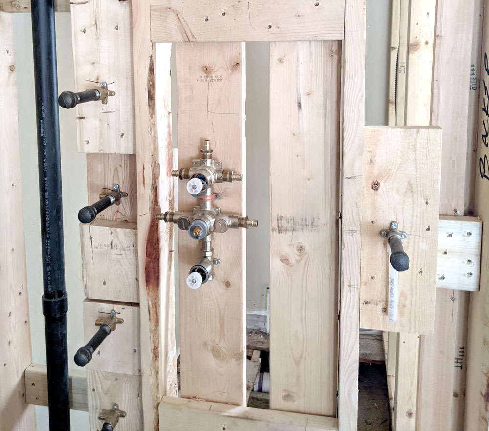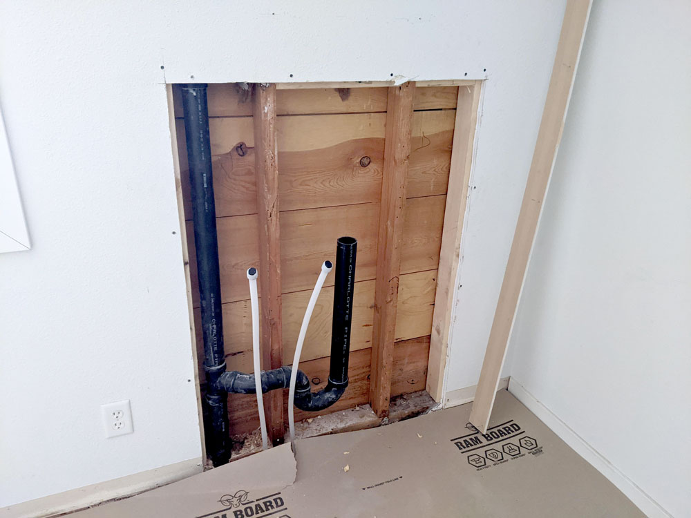 The plumbing for the double vanity is installed.