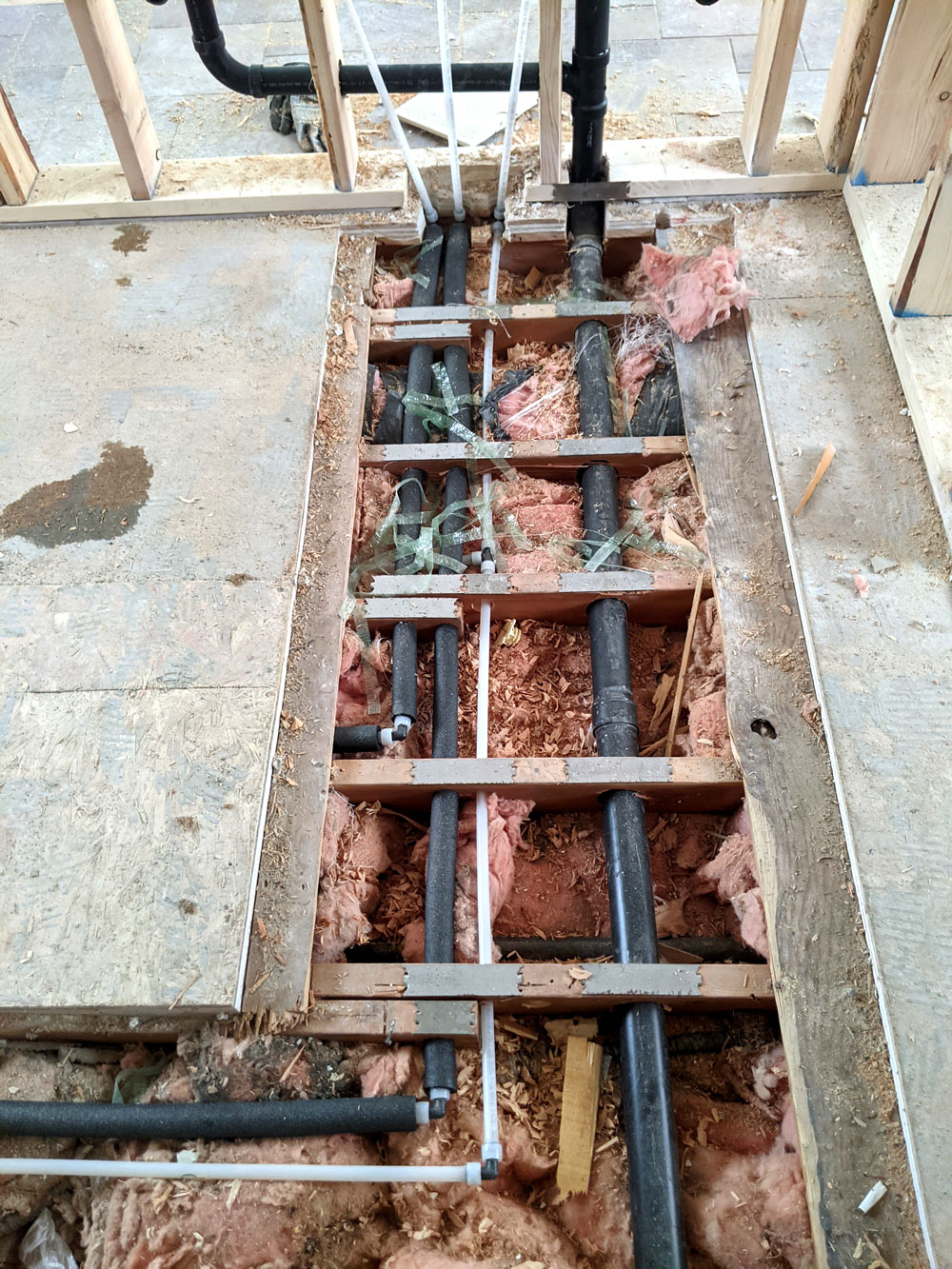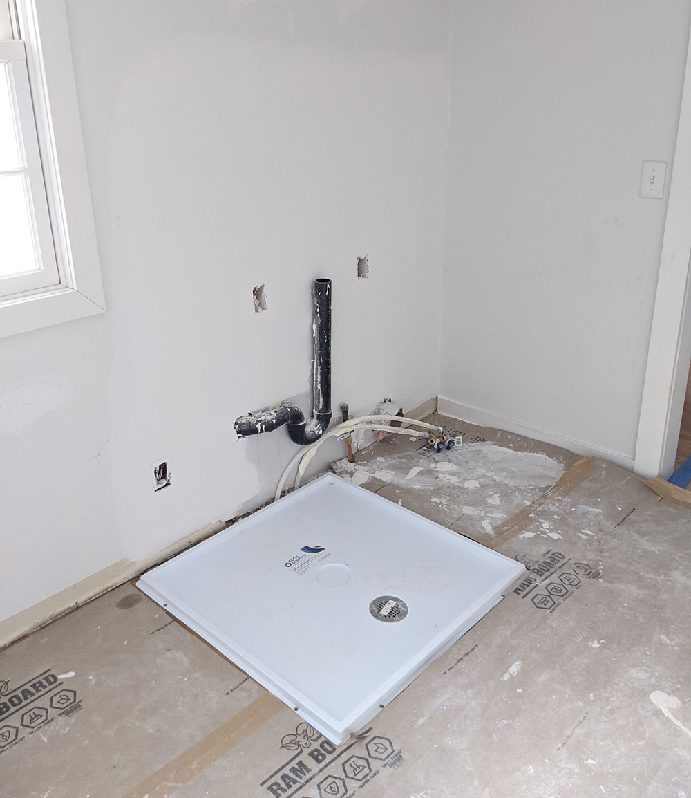 The 2nd-floor laundry rough-ins are complete.