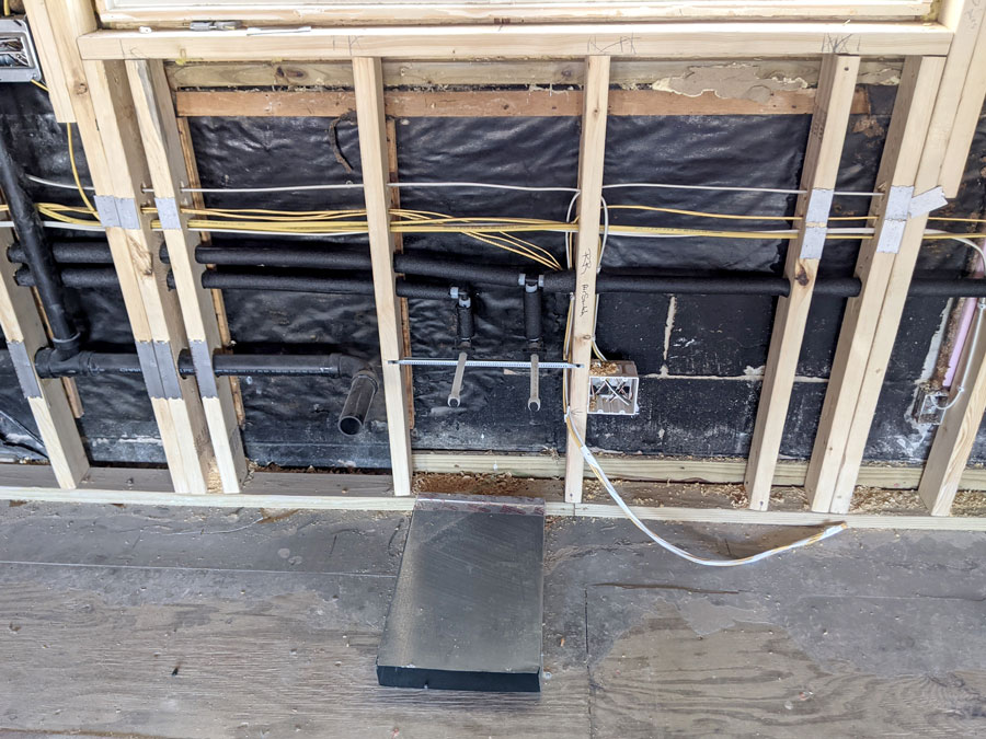 New plumbing feeding the second floor.