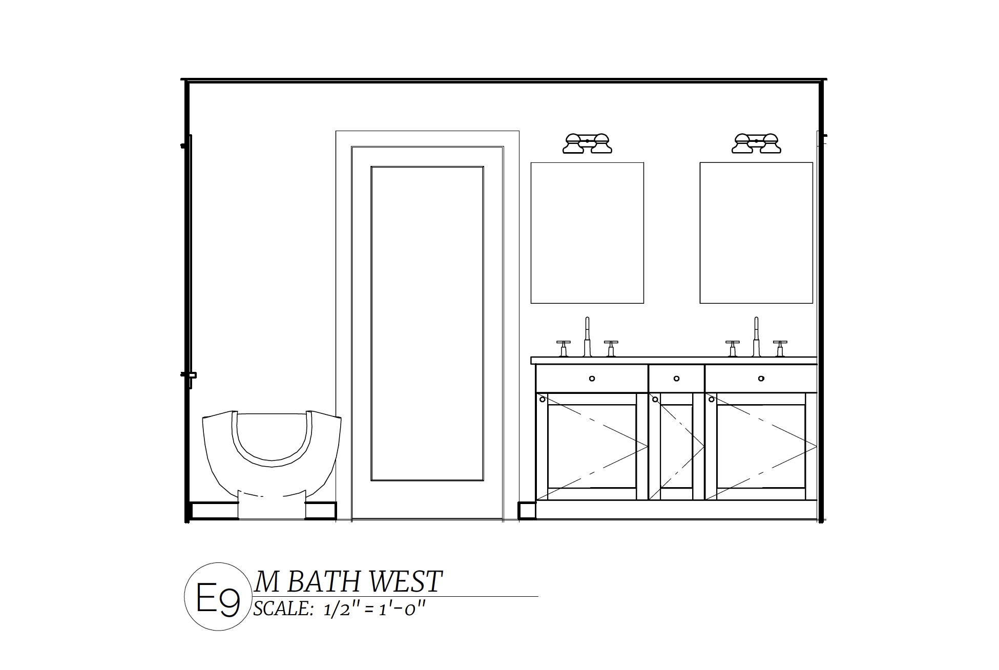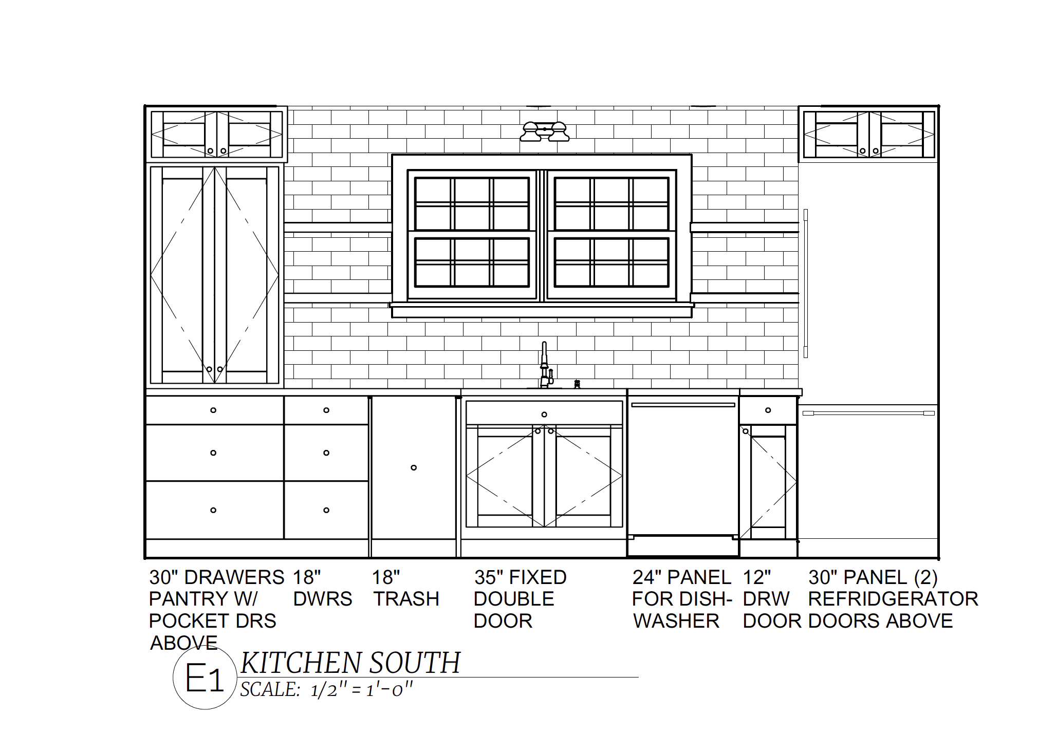 This kitchen elevation shows plans for the sink with a faucet and decorative lighting above.