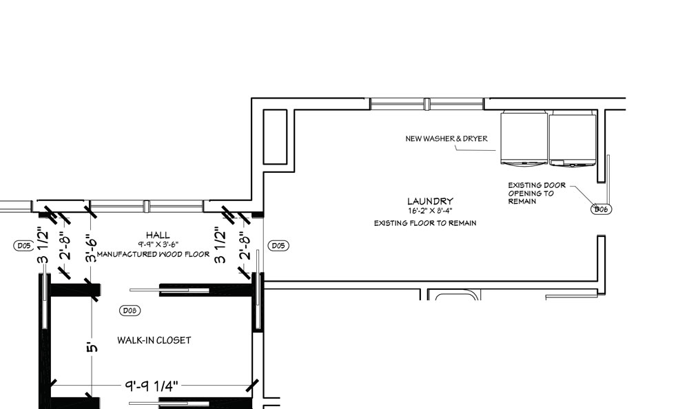 The washer and dryer are moving upstairs, closer to the bedrooms and the new walk-in closet. To achieve this, new plumbing and electrical connections are made upstairs by tying into the existing plumbing from a lower floor. Moving the washer and dryer to the second story will make it easier for the family to do laundry.