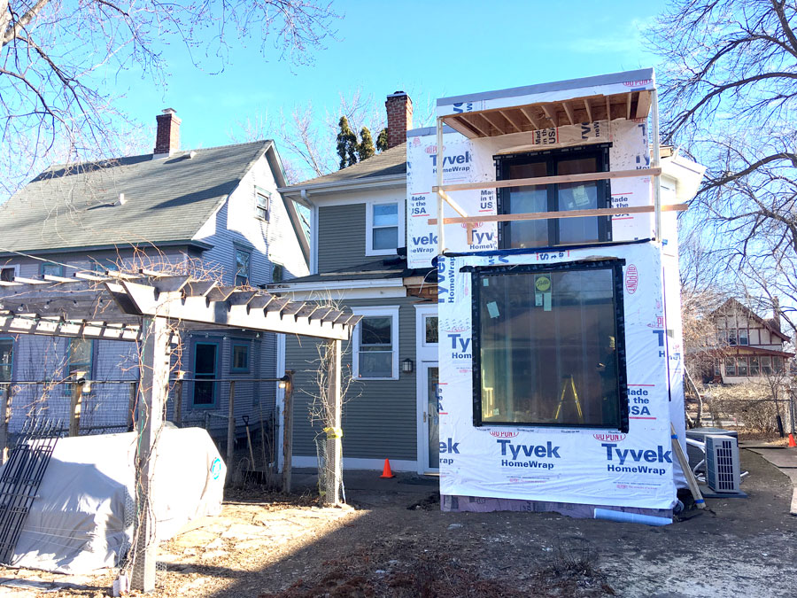 Installing the new windows and patio door allows us to remove the temporary walls on the 1st and 2nd floors, opening the new Addition to the home.