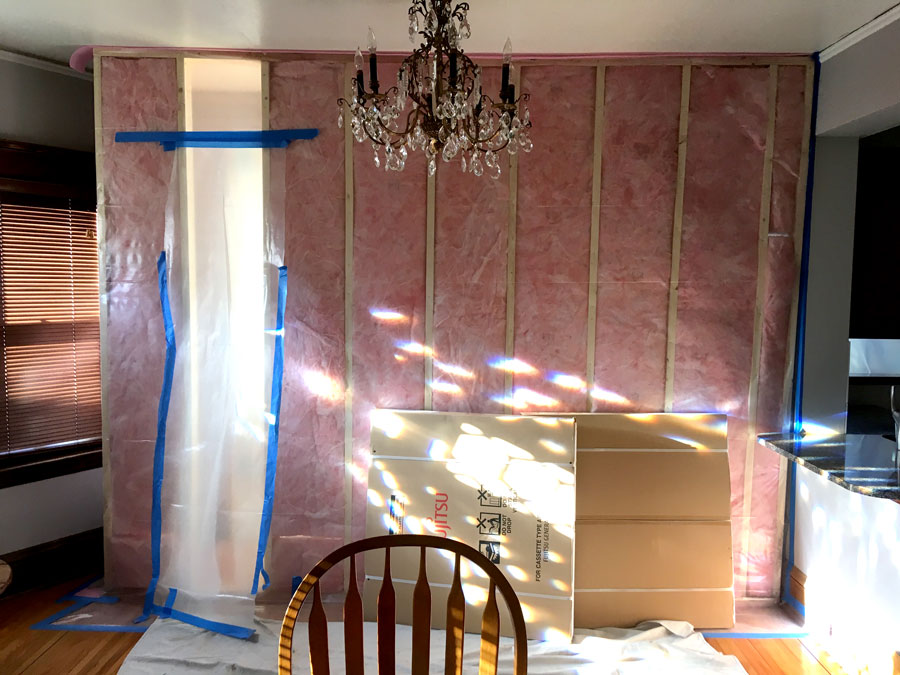 We built a temporary insulated wall on the 1st-floor before removing the Dining Room's back wall.
