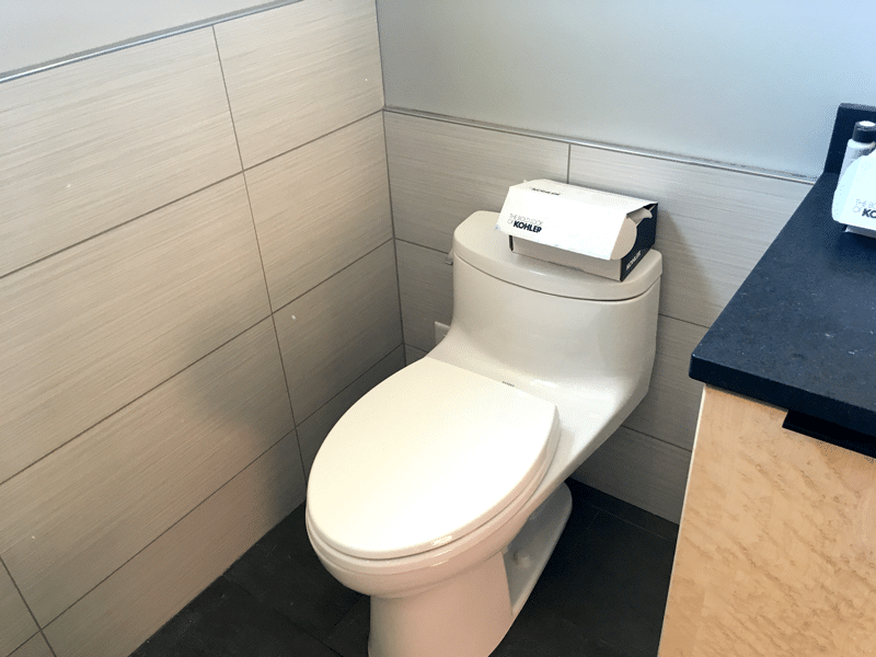 The toilet is in! The paper holder is in the box on the tank ready to mount.