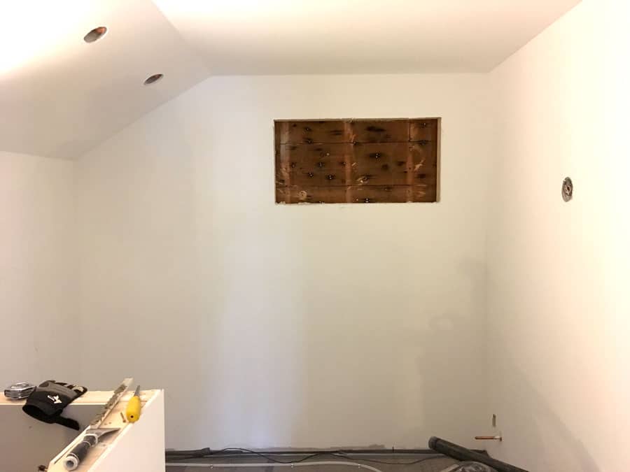 This South Minneapolis Attic is starting to look like a brand new space! Installing drywall will define the individual spaces for the Bathroom, Bedrooms, and dedicated storage areas. The new doorways are drywalled to accommodate casing (wood trim). The woodwork will be sealed with a clear finish to showcase the wood’s natural beauty. Once the walls are installed, taped, mudded, sanded, and primed we’ll move on to trim carpentry and painting.
