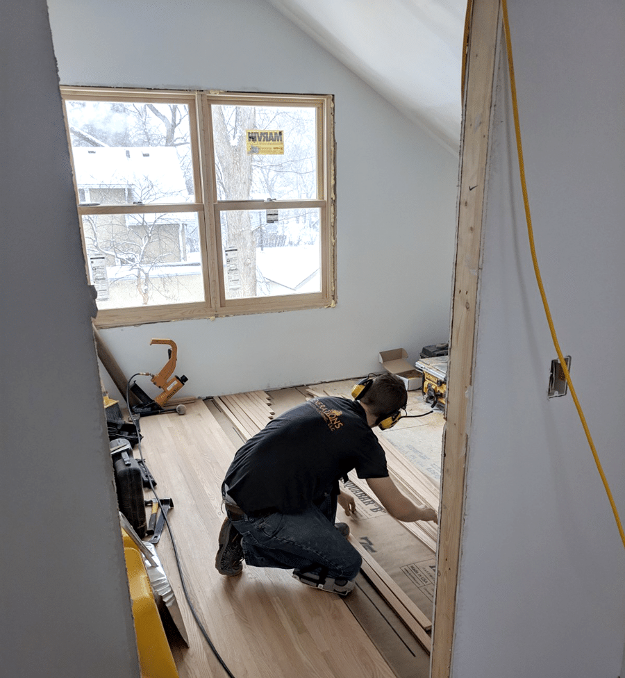 We selected solid red oak hardwood for the Attic floors to match the home’s main level. We also matched the Attic’s new interior doors to existing doors on the home’s main floor to create continuity.