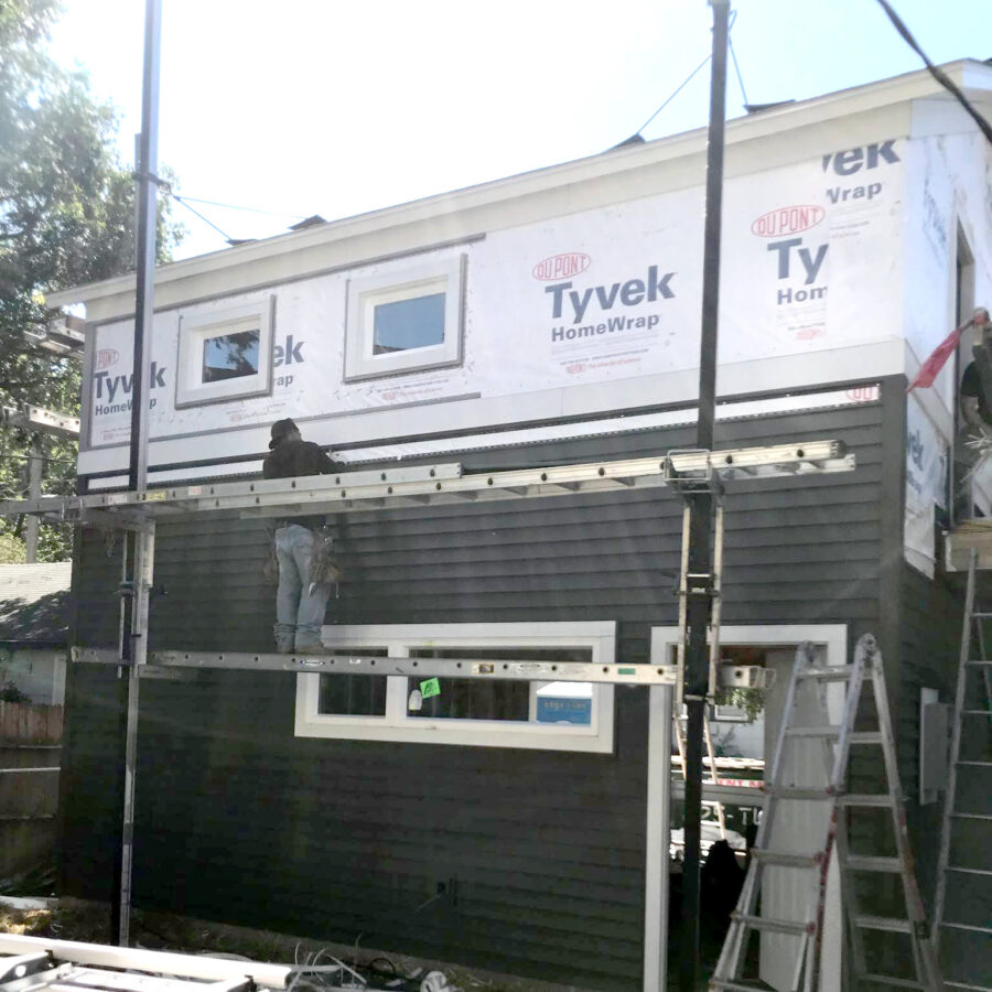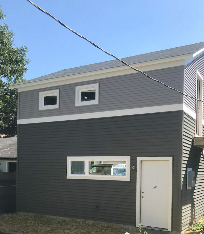 The siding is up! We installed two types of vinyl siding on the Garage/ADU to create visual interest.