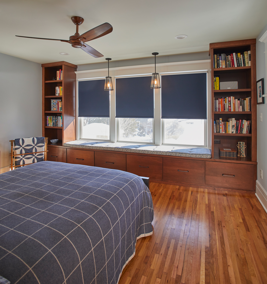 acf domain was triggered too early. This is usually an indicator for some code in the plugin or theme running too early. Translations should be loaded at the init action or later. Please see Debugging in WordPress for more information. (This message was added in version 6.7.0.) in /home/dh_ubgp4r/cur007-01.brethummel.com/wp-includes/functions.php on line 6131responsive-lightbox-lite domain was triggered too early. This is usually an indicator for some code in the plugin or theme running too early. Translations should be loaded at the init action or later. Please see Debugging in WordPress for more information. (This message was added in version 6.7.0.) in /home/dh_ubgp4r/cur007-01.brethummel.com/wp-includes/functions.php on line 6131rocket domain was triggered too early. This is usually an indicator for some code in the plugin or theme running too early. Translations should be loaded at the init action or later. Please see Debugging in WordPress for more information. (This message was added in version 6.7.0.) in /home/dh_ubgp4r/cur007-01.brethummel.com/wp-includes/functions.php on line 6131wordpress-seo domain was triggered too early. This is usually an indicator for some code in the plugin or theme running too early. Translations should be loaded at the init action or later. Please see Debugging in WordPress for more information. (This message was added in version 6.7.0.) in /home/dh_ubgp4r/cur007-01.brethummel.com/wp-includes/functions.php on line 6131Our clients wanted to create a main bedroom suite on the second floor of their St. Paul home. The existing second floor had four bedrooms, one of which they used as a walk-in closet/Sitting Room. We reconfigured the layout, combining two bedrooms to create a charming primary suite with a ¾ Bath and walk-in closet. A minimal wood ceiling fan and Edison bulb light fixtures add a vintage-modern touch to the room. Built-in storage creates a window seat flanked by custom bookcases allowing for an organized, balanced space. The new bathroom design also features additional recessed storage along with an art niche. The custom shower tile layout includes oak leaf accents and color, touches that really reflect the client’s personal style.