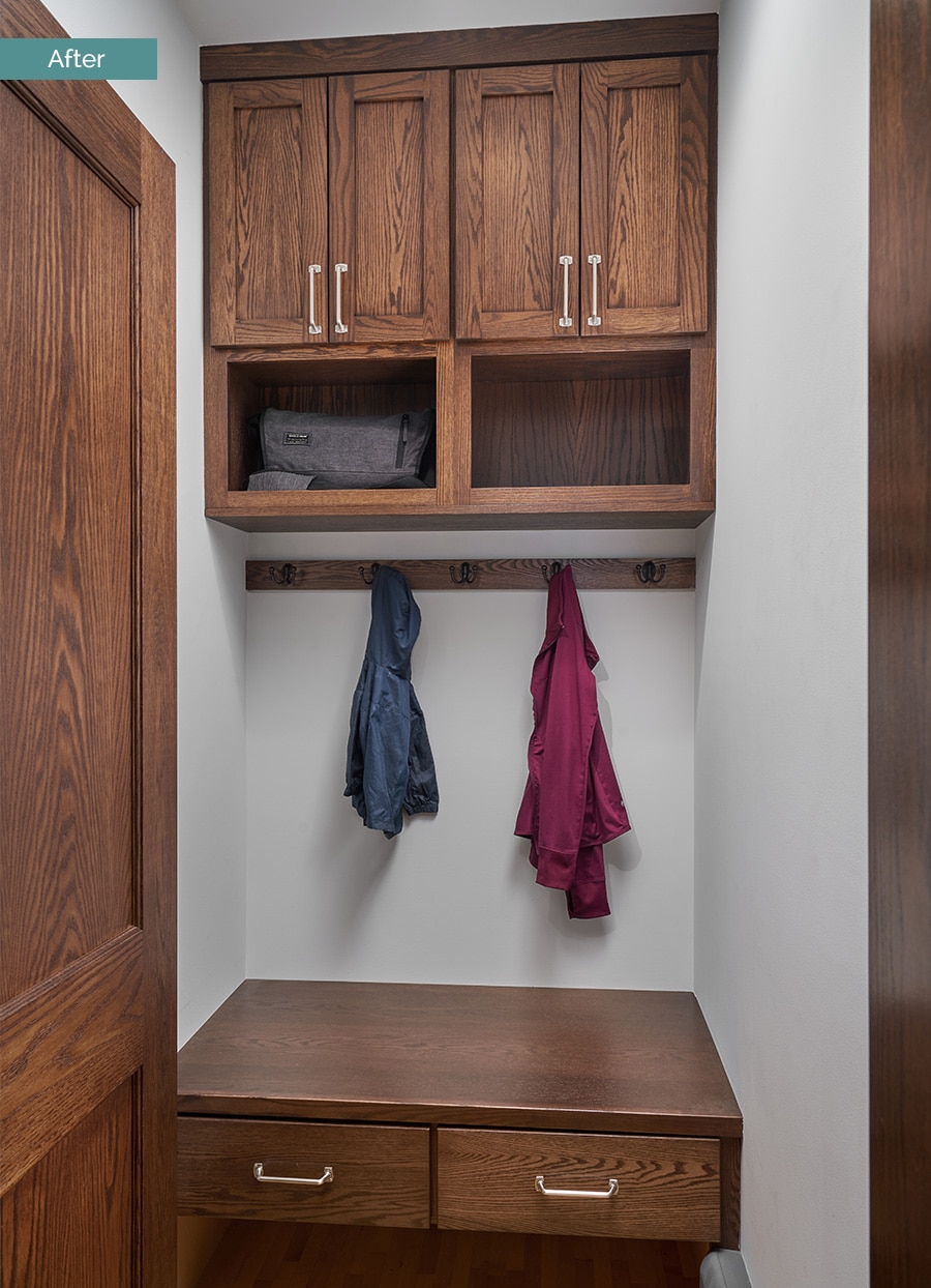 The new Mudroom just off the Kitchen has a built-in bench and storage.