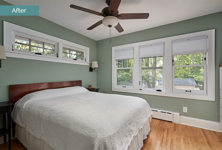 Bedroom Before | The original Owner's Bedroom only had 1 window, a very small closet, and was too small for a king size bed.