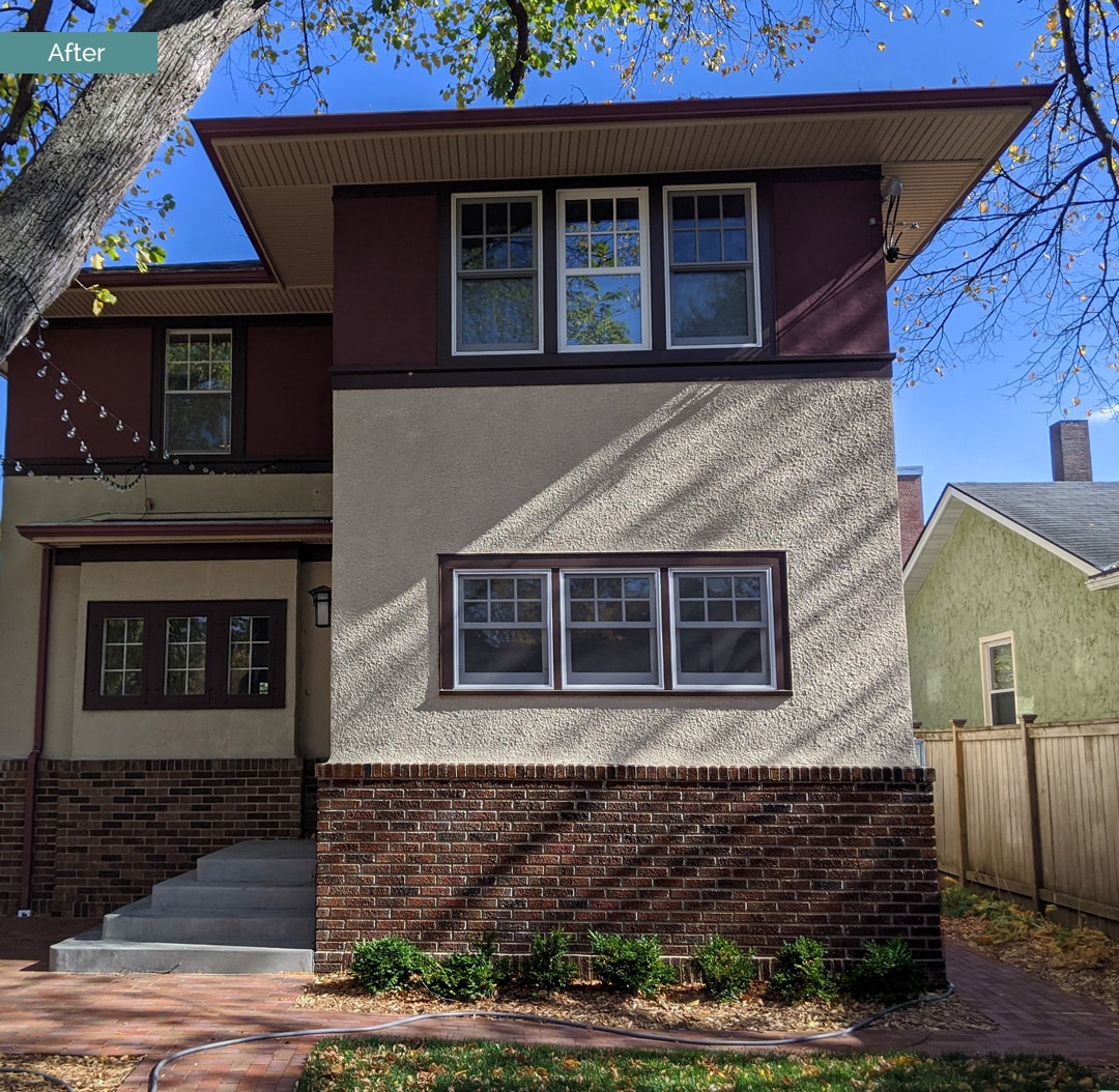 The Exterior After | The brick on the left is original to the home and the brick to the right on the Addition is new.