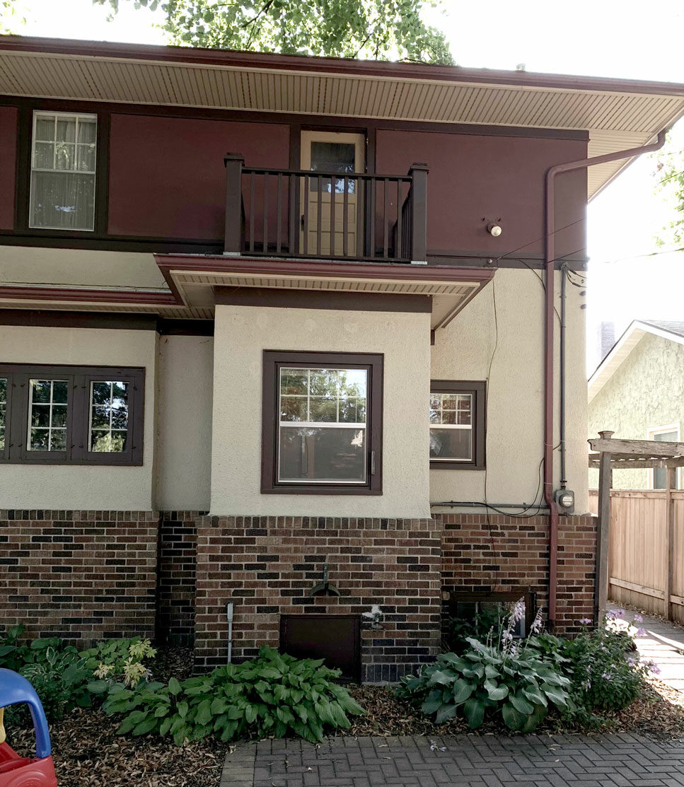 Before | The back of the home had a bump-out with a small balcony above. We'll remove the bump-out to make way for the new Addition, which will allow for a larger Kitchen on the first floor and an expanded Owner's bedroom above.