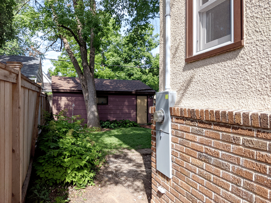 We've finished the Addition's new stucco and brick exterior and replaced the temporary electric service on a post by the fence with the permanent electric service on the house.