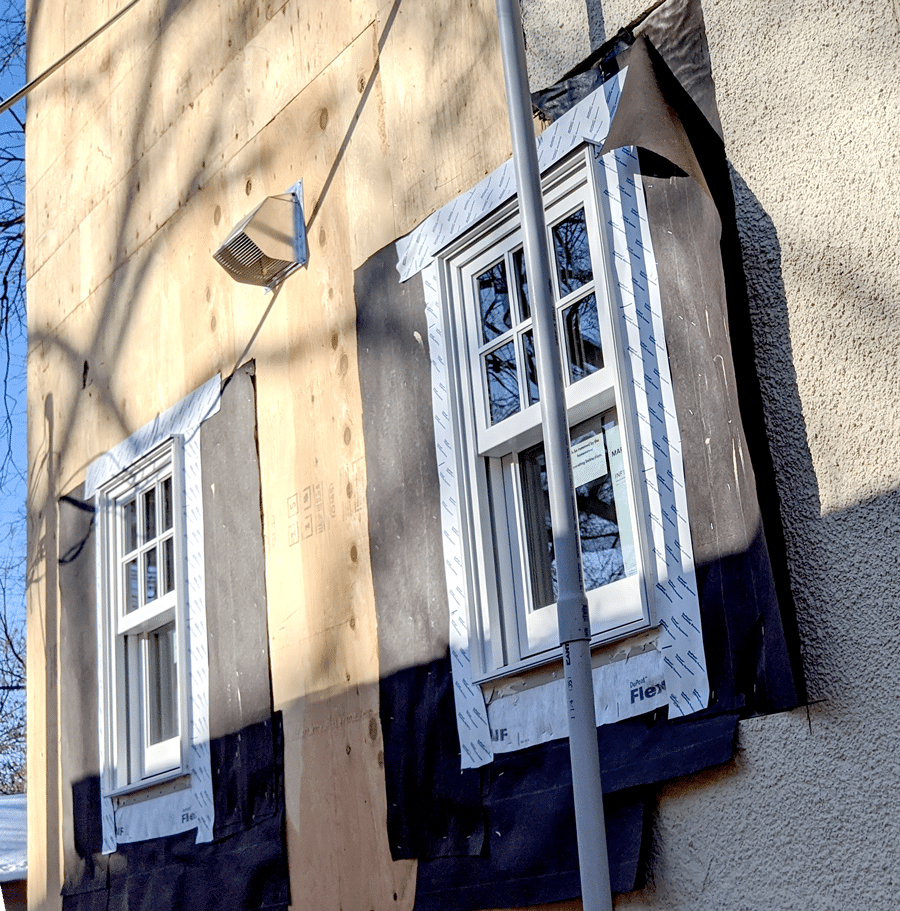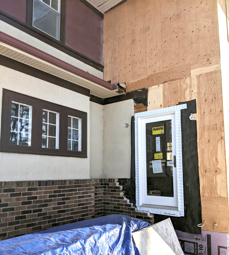 The masonry at the base of the addition has been installed. Now we are ready to apply the stucco.