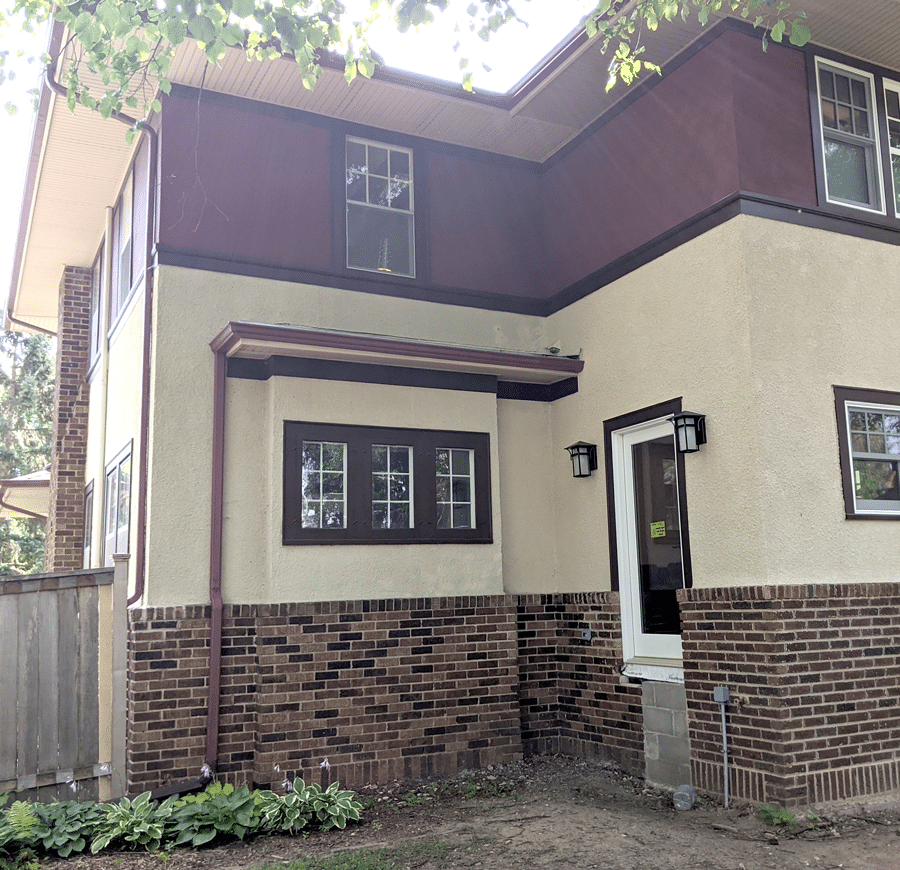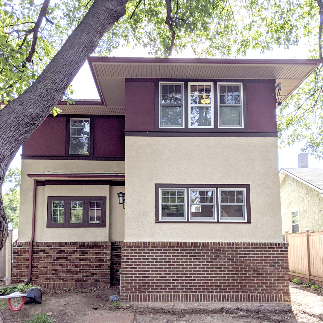 The goal for the addition exterior is to match the color and texture home’s existing stucco, brick, and trim, creating the feeling that the addition was always part of the house. The mason will choose multiple colors of brick that match the existing palette, laying them in a pattern mimicking the home’s original masonry. We’ll color match the two hues of stucco to existing and install window and door trim.
